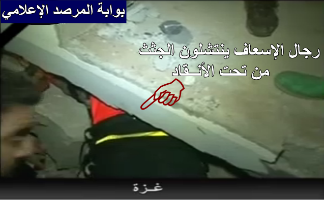 رجال الإسعاف ينتشلون جثث الشهداء من تحت الأنقاد